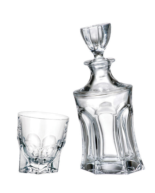 Unieke Whisky Set uit de lijn Acapulco van het Tsjechische merk Bohemia. De producten in deze kristallen Whisky Set zijn gemaakt van hoogwaardig kristalglas en kenmerken zich door een elegante en sierlijke vormgeving.