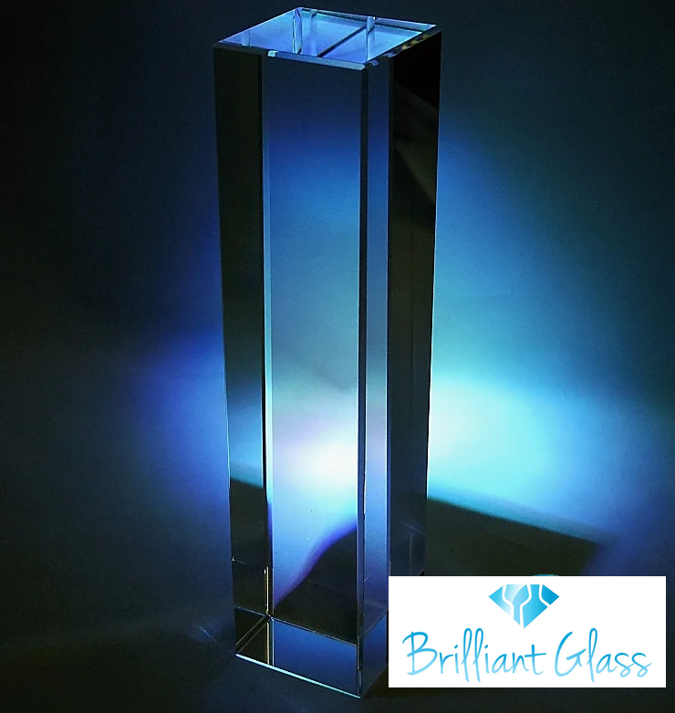 De prijs is inclusief een glasblok van 60 x 60 x250 mm en een geschenkdoos.