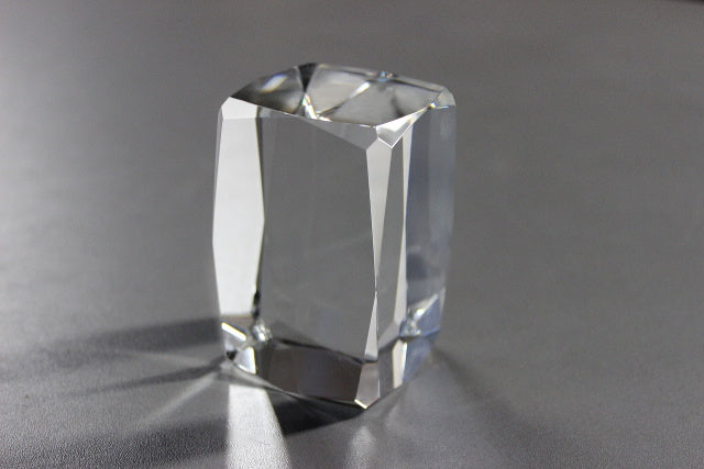 Blok gemaakt van optisch glas van de hoogste kwaliteit, mechanisch geslepen en gepolijst.