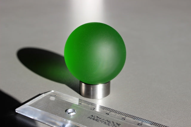 De handvat heeft een ronde vorm, een diameter van 40 mm en een groene kleur.