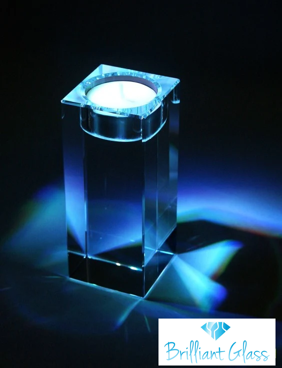 Glazen kaarsenhouder gemaakt van optisch glas van de hoogste kwaliteit, mechanisch geslepen en gepolijst.