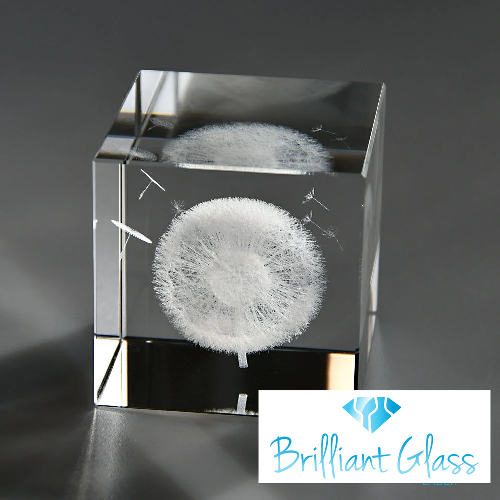 3D object in kristallen kubus 60 mm - Paardenbloem