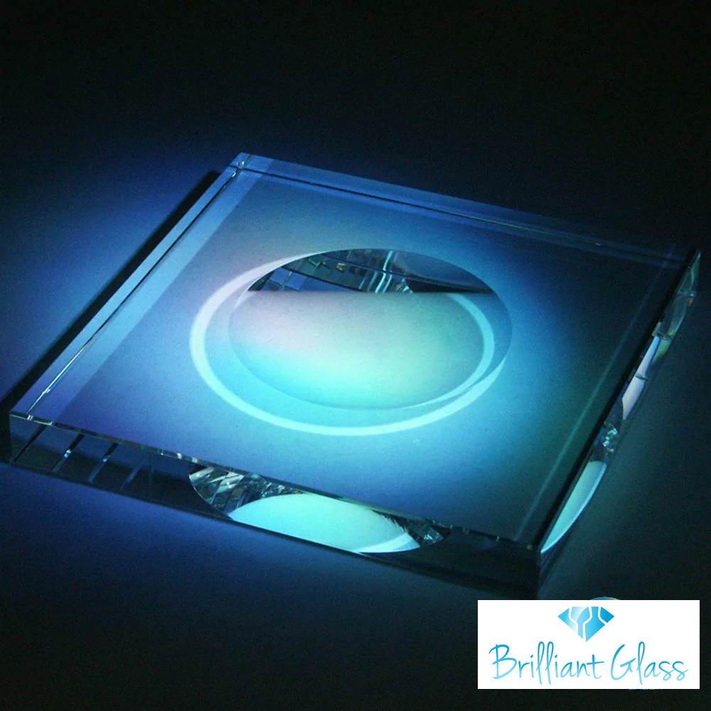 Glazen statief met ontpit optisch glas van de hoogste kwaliteit, mechanisch geslepen en gepolijst.
