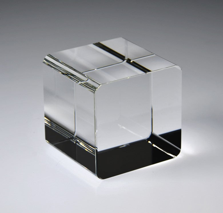 Glazen kubus met 4 afgeronde hoeken gemaakt van optisch glas van de hoogste kwaliteit, mechanisch geslepen en gepolijst.