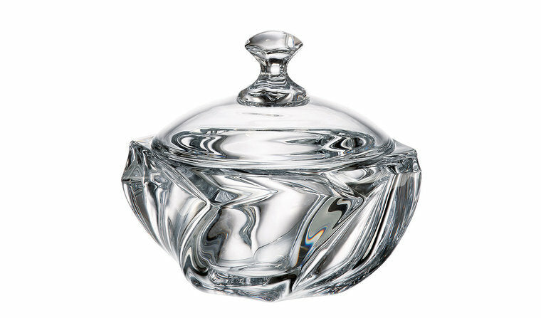 Kristal Bonbonnière Macao 33 cm , wordt gemaakt van hoge kwaliteit Tsjechisch kristal glas. De Bonbonnière is van het merk Bohemia. Typische eigenschappen van kristalglas: De zuiverheid ervan, glans en hoge brekingsindex van lichtstraal. Met een diameter van 200 mm is hij perfect voor het bewaren van fruit, noten of seizoensdecoraties.