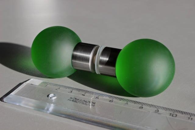 De handvatten hebben een vorm van een cirkel, een groene kleur, en een diameter van 40 mm. De dikte van de deur kan variëren tussen 6 tot 10 mm.