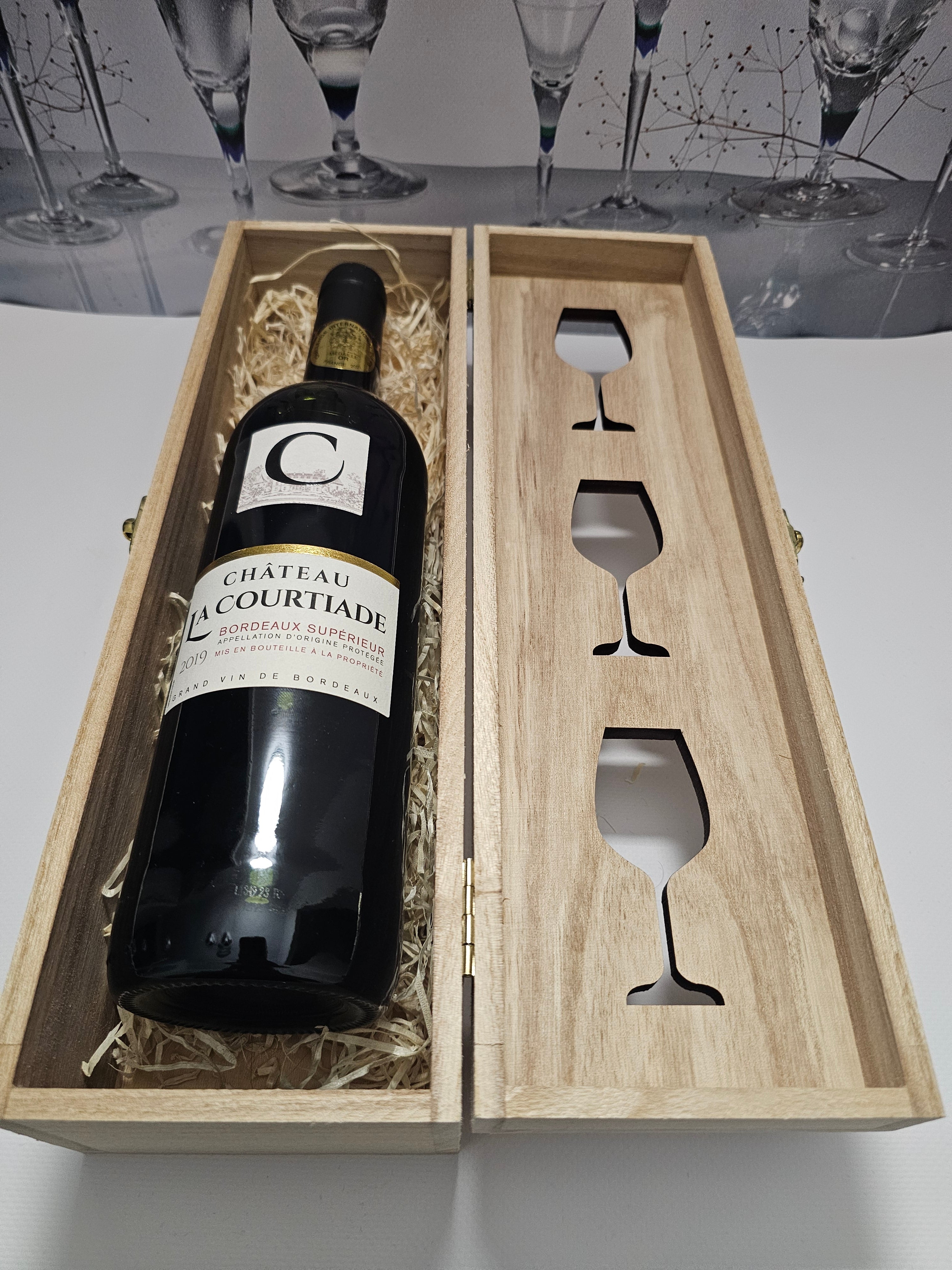 Modern wijnset - wijnkist met 0,7 l fles - Château la Courtiade 2019