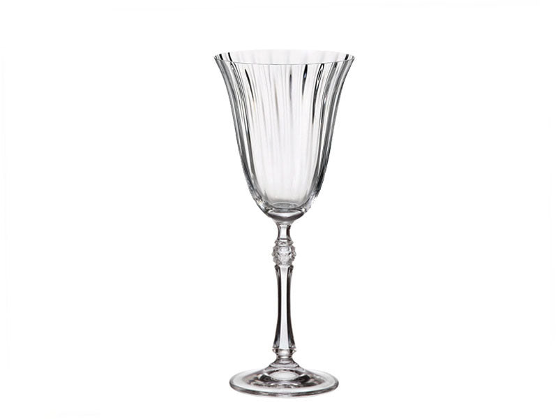 Daarnaast hebben de glazen een decoratie op hun oppervlak in de vorm van verticale uitsteeksels die het licht prachtig breken.