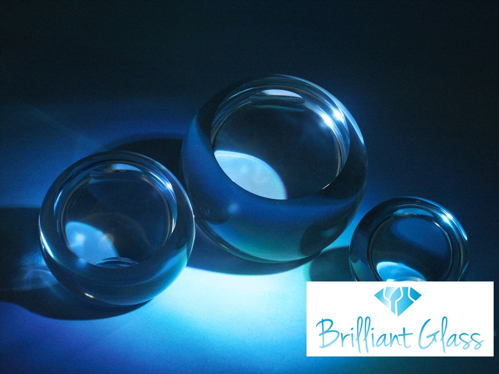 Afmetingen: 100, 80 en 60 mm bollenSet glazen trofeeën - kristallen bollen met staand oppervlak.