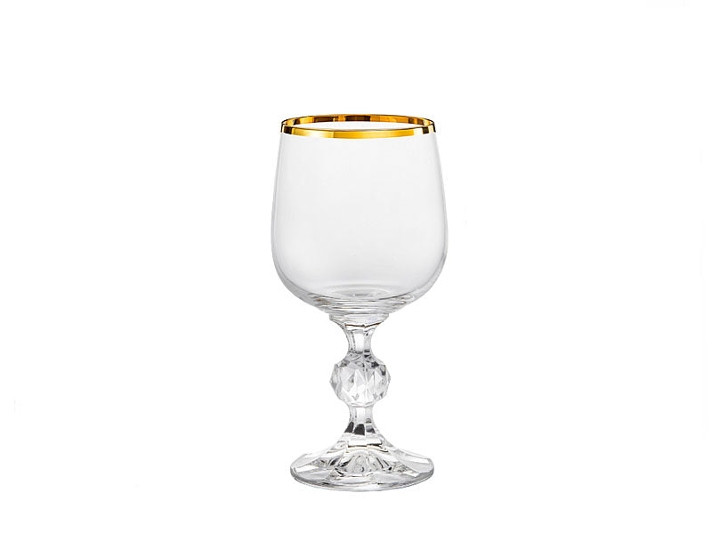 STERNA gouden -wijnglazen zijn gemaakt van perfect transparant loodvrij kristalglas.In het bovenste gedeelte van de beker zit een versiering in de vorm van een handgeschilderde gouden strip.
