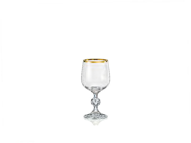 De glazen hebben een elegante gouden decoratie in de vorm van een handgeschilderde gouden rand van 3 mm dik. Bovendien hebben de glazen een decoratieve "diamant" in het midden van de steel, wat ze uniek maakt.