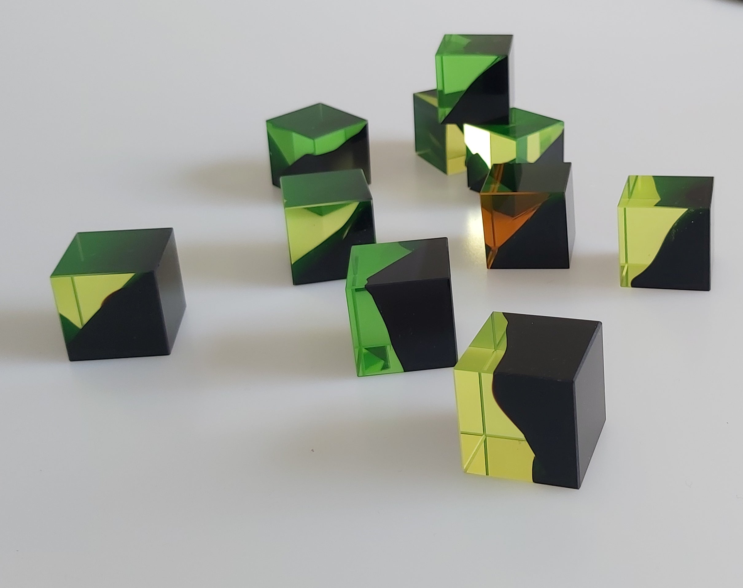 De prijs is inclusief een uranium glazen kubus van 25x25x25 mm (veilig voor de gezondheid) en een basisverpakking in folie.